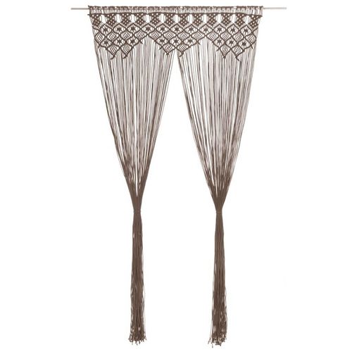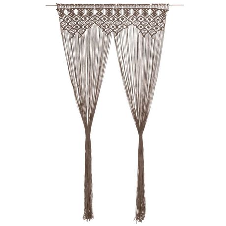 Ce rideau en fils pratique avec macrame constitue un excellent moyen de decorer votre interieur. Il peut etre utilise comme un rideau de porte, un rideau de fenetre, un separateur de piece ou pour une vitrine. Le rideau est en 80 % coton et 20 % polyester et lavable a basse temperature. Si necessair