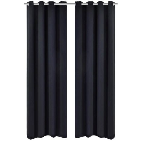 Rideau occultant 2 pcs avec œillets metalliques 135x175 cm Noir
