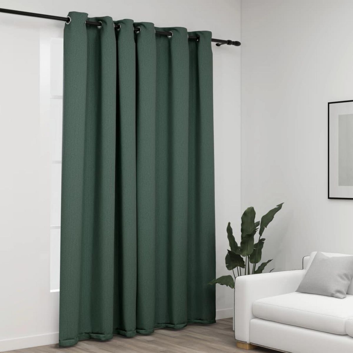 Rideau occultant Aspect de lin avec œillets Vert 290x245 cm