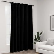 Rideau occultant d'aspect de lin avec crochets Noir 290x245 cm