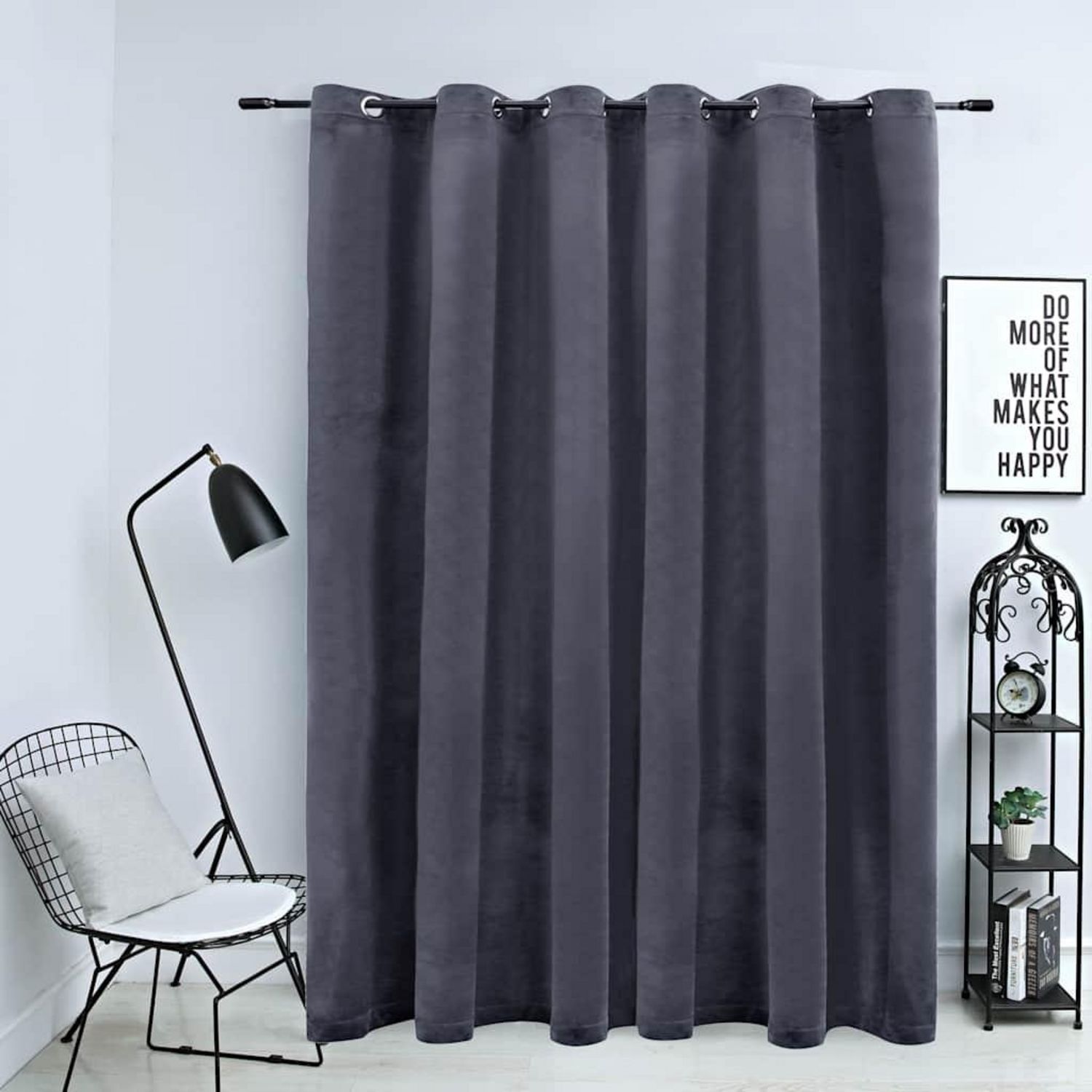 Rideau occultant et anneaux metal Velours Anthracite 290x245 cm