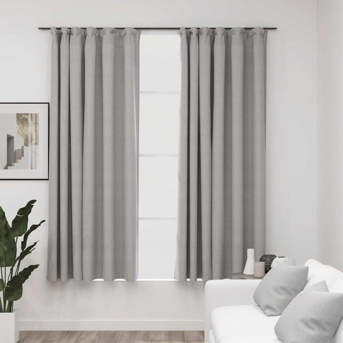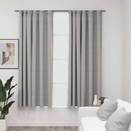 Rideaux occultants aspect lin avec crochets 2pcs Gris 140x175cm