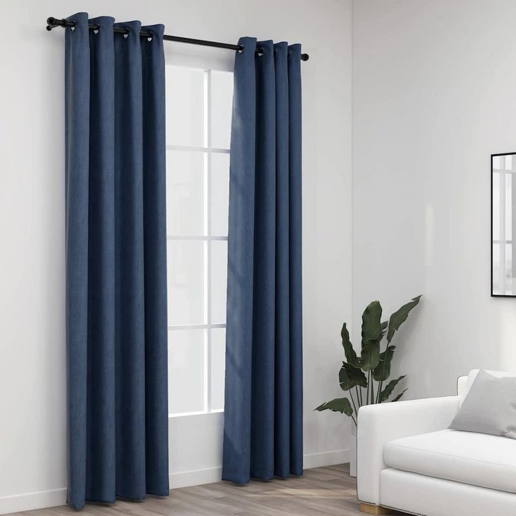 Rideaux occultants Aspect lin avec œillets 2 pcs Bleu 140x245cm