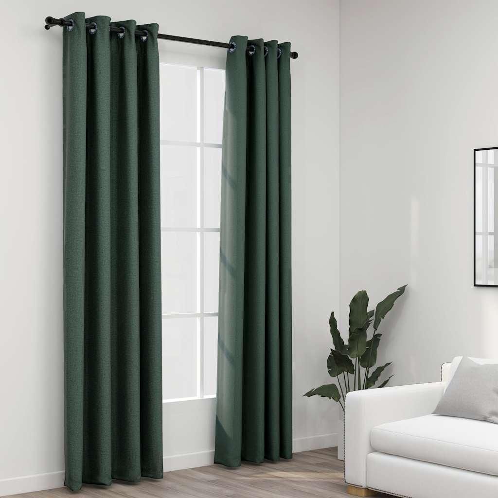 Rideaux occultants Aspect lin avec œillets 2 pcs Vert 140x225cm