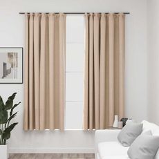 Rideaux occultants aspect lin et crochets 2 pcs beige 140x175cm