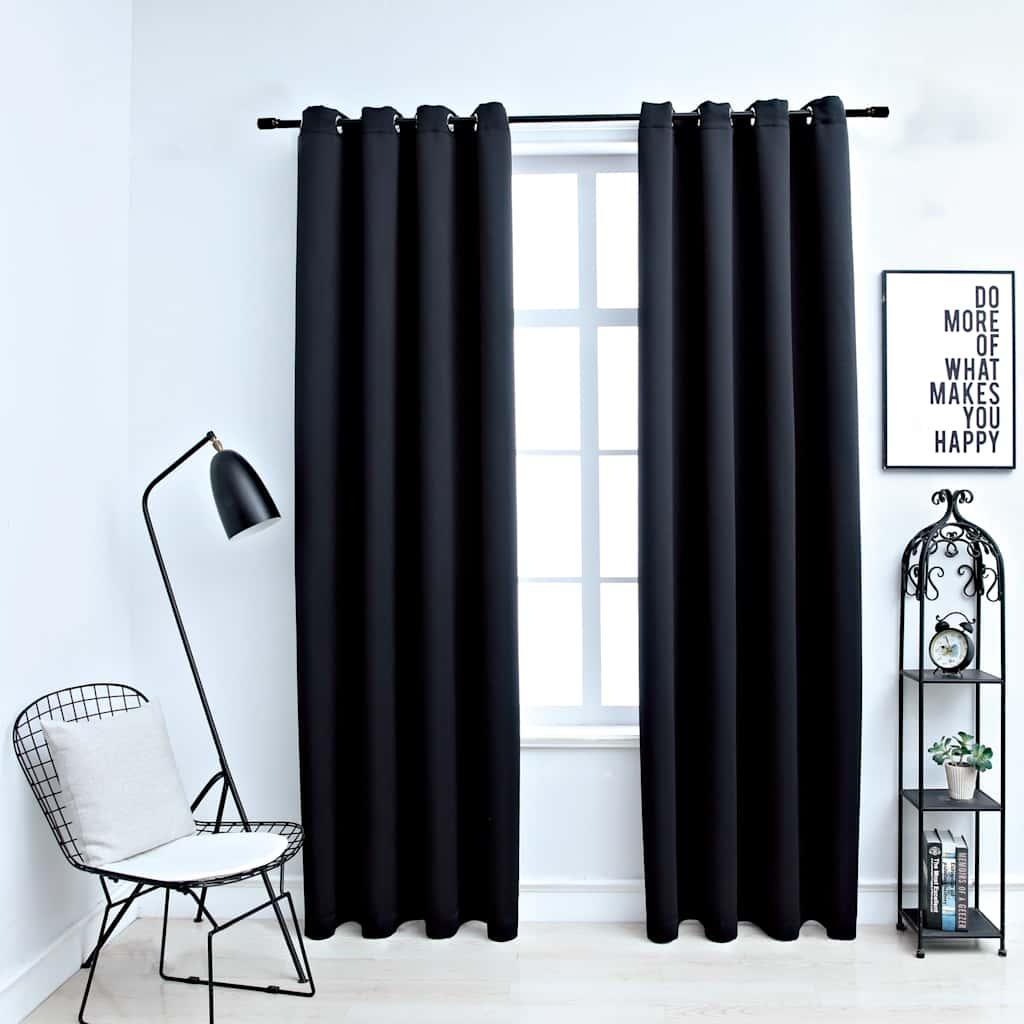Rideaux occultants avec anneaux en metal 2 pcs Noir 140x245 cm