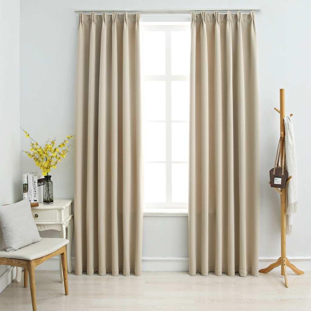 Rideaux occultants avec crochets 2 pcs Beige 140x245 cm