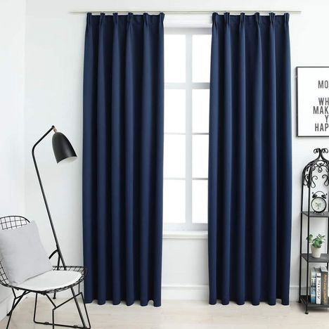 Rideaux occultants avec crochets 2 pcs Bleu 140x245 cm