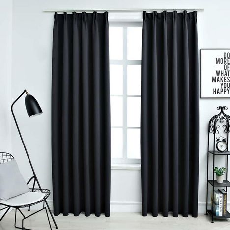 Rideaux occultants avec crochets 2 pcs Noir 140x225 cm