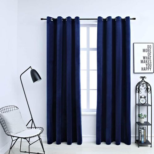 Rideaux occultants et anneaux 2pcs Velours Bleu fonce 140x175cm