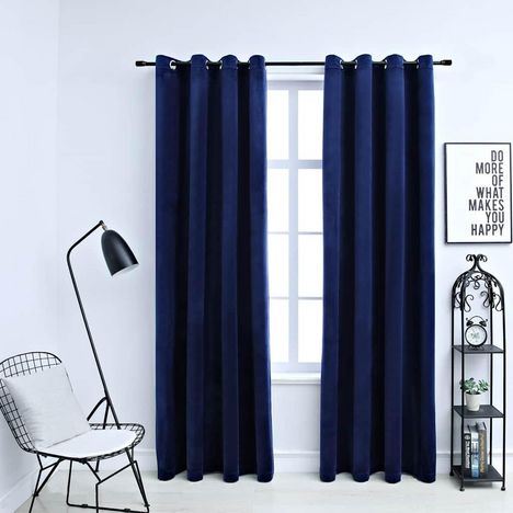 Rideaux occultants et anneaux 2pcs Velours Bleu fonce 140x245cm