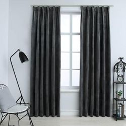 Rideaux occultants et crochet 2pcs Velours Anthracite 140x245cm