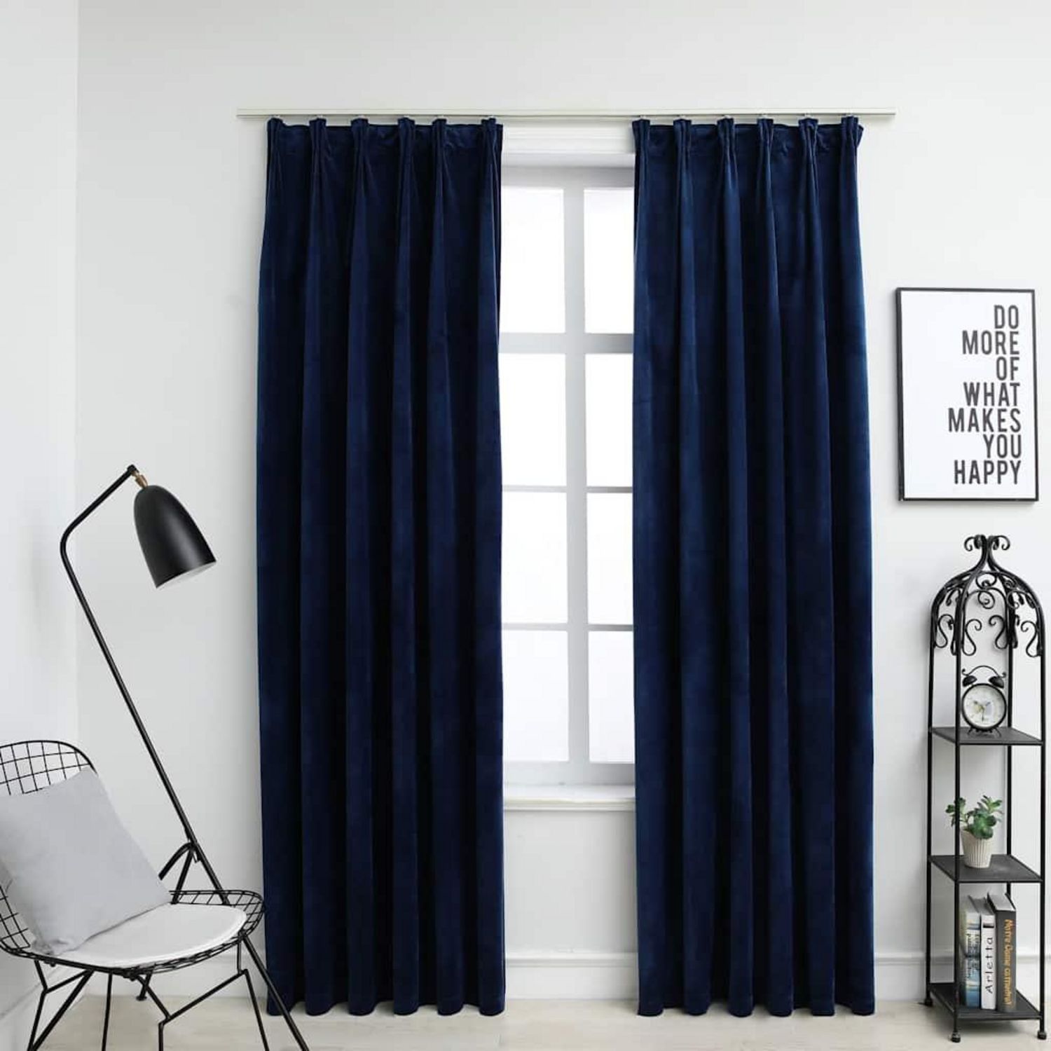 Rideaux occultants et crochet 2pcs Velours Bleu fonce 140x225cm