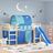 Rideaux pour lit mezzanine avec tunnel bleu polyester