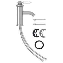 La construction en laiton massif et la poignee en metal rendent ce robinet d'evier durable et robuste. Ce robinet presente une conception flexible en acier inoxydable du tuyau de raccordement, ce qui le rend adapte a la plupart des eviers. Il peut etre connecte facilement a la plupart des systemes de pression d'eau froide et chaude de base.