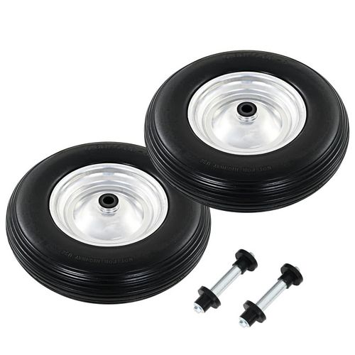 Roue de brouette avec axe 2 pcs PU solide 4.00-8 390 mm