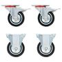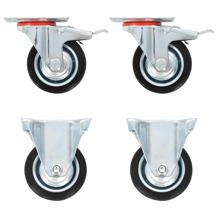 Ces roulettes sont fabriquees en caoutchouc qui se distingue par une bonne resistance aux chocs et aux vibrations, permettant a ces roulettes de fonctionner en douceur et silencieusement. De plus, leurs surfaces douces protegent efficacement votre sol des egratignures. En outre, le cadre en fer zingue est hautement resistant a la rouille et ajoute ainsi a la robustesse et a la durabilite de la roulette pivotante. Deux de ces roulettes pivotantes sont equipees de freins doubles pour controle flexible. Chaque roulette pivotante a une capacite de charge maximale de 50 kg.
