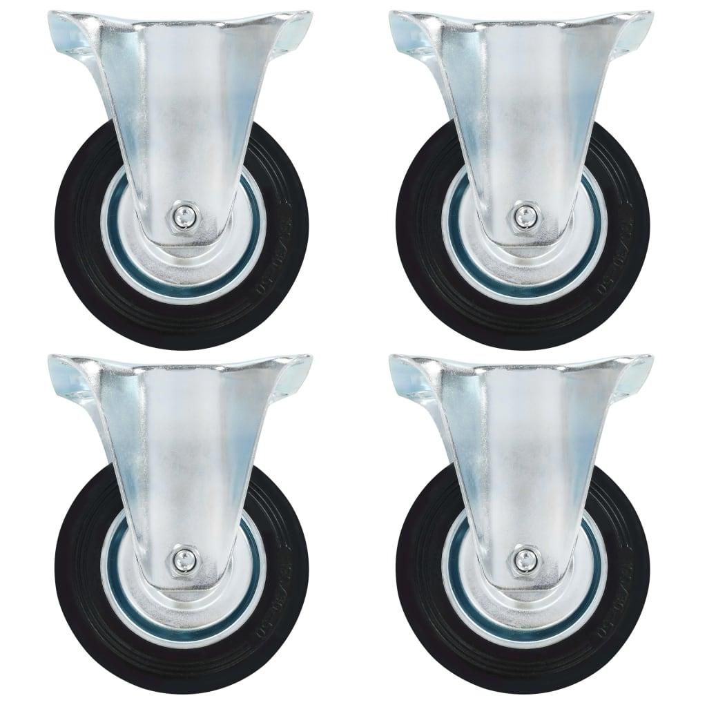 Cet ensemble de 4 roulettes fixes sera l'accessoire ideal pour les petits equipements et les meubles tels que d'etabli, de chariot, de table basse, de support a plantes, de bibliotheque, de panier d'achat, etc. Ces roulettes sont fabriquees en caoutchouc qui se distingue par une bonne resistance aux