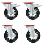 Ces roulettes sont fabriquees en caoutchouc qui se distingue par une bonne resistance aux chocs et aux vibrations, permettant a ces roulettes de fonctionner en douceur et silencieusement. De plus, leurs surfaces douces protegent efficacement votre sol des egratignures. En outre, le cadre en fer zingue est hautement resistant a la rouille et ajoute ainsi a la robustesse et a la durabilite de la roulette pivotante. Deux de ces roulettes pivotantes sont equipees de freins doubles pour controle flexible. Chaque roulette pivotante a une capacite de charge maximale de 150 kg.