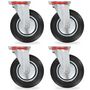 Ces roulettes sont fabriquees en caoutchouc qui se distingue par une bonne resistance aux chocs et aux vibrations, permettant a ces roulettes de fonctionner en douceur et silencieusement. De plus, leurs surfaces douces protegent efficacement votre sol des egratignures. En outre, le cadre en fer zingue est hautement resistant a la rouille et ajoute ainsi a la robustesse et a la durabilite de la roulette pivotante. Chaque roulette pivotante a une capacite de charge maximale de 180 kg.