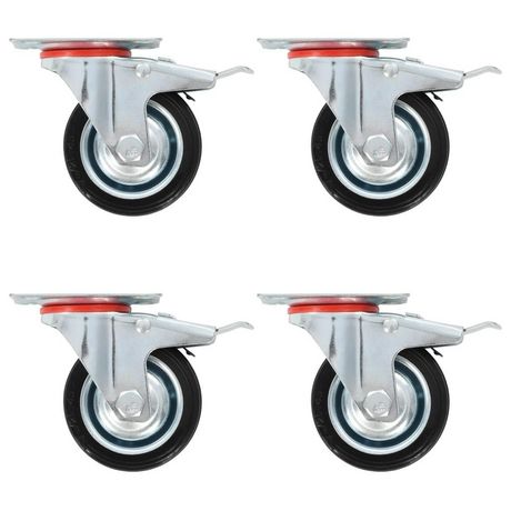 Ces roulettes sont fabriquees en caoutchouc qui se distingue par une bonne resistance aux chocs et aux vibrations, permettant a ces roulettes de fonctionner en douceur et silencieusement. De plus, leurs surfaces douces protegent efficacement votre sol des egratignures. En outre, le cadre en fer zingue est hautement resistant a la rouille et ajoute ainsi a la robustesse et a la durabilite de la roulette pivotante. Ces roulettes pivotantes sont equipees de freins doubles pour controle flexible. Chaque roulette pivotante a une capacite de charge maximale de 50 kg.