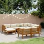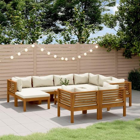 Salon de jardin 10 pcs avec coussin creme Bois d'acacia solide