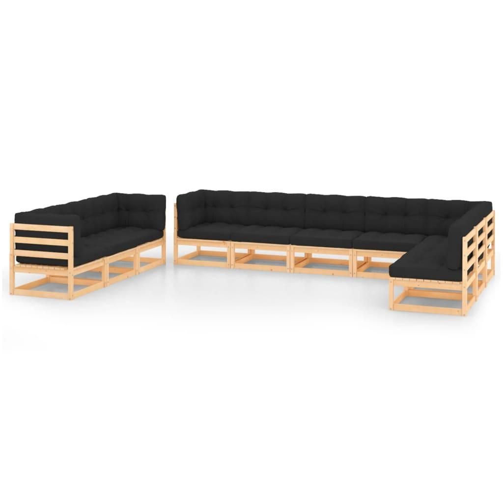 Salon de jardin 10 pcs avec coussins anthracite Pin massif