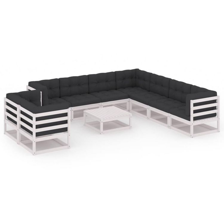 Salon de jardin 10 pcs avec coussins Blanc Bois de pin massif
