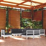 Salon de jardin 10 pcs avec coussins blanc bois de pin massif