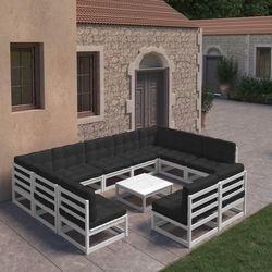 Salon de jardin 10 pcs avec coussins Blanc Bois de pin massif