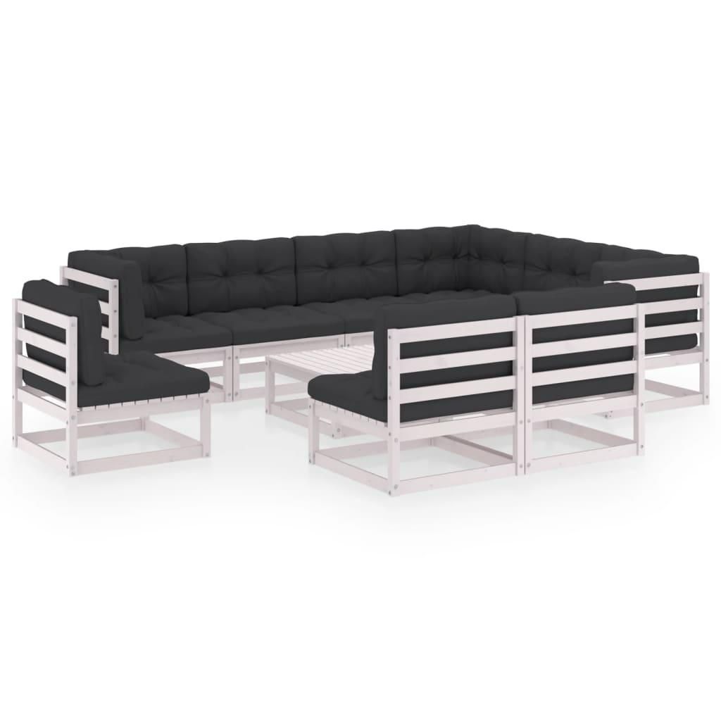 Salon de jardin 10 pcs avec coussins Blanc Bois de pin massif