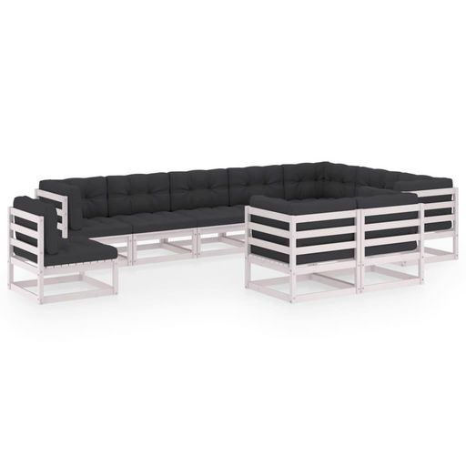 Salon de jardin 10 pcs avec coussins Blanc Bois de pin massif