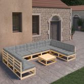 Salon de jardin 10 pcs avec coussins Bois de pin massif
