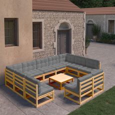 Salon de jardin 10 pcs avec coussins Bois de pin massif