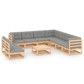 Salon de jardin 10 pcs avec coussins Bois de pin massif