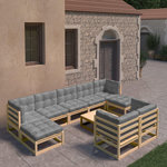 Salon de jardin 10 pcs avec coussins Bois de pin massif