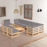Salon de jardin 10 pcs avec coussins Bois de pin massif