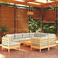 Salon de jardin 10 pcs avec coussins creme bois de pin massif