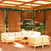 Salon de jardin 10 pcs avec coussins creme bois de pin massif