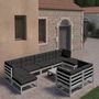 Salon de jardin 10 pcs avec coussins Gris Bois de pin massif