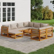 Salon de jardin 10 pcs avec coussins gris clair bois massif