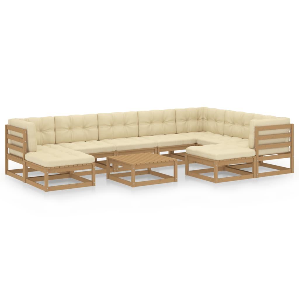 Salon de jardin 10 pcs avec coussins Marron miel Bois de pin