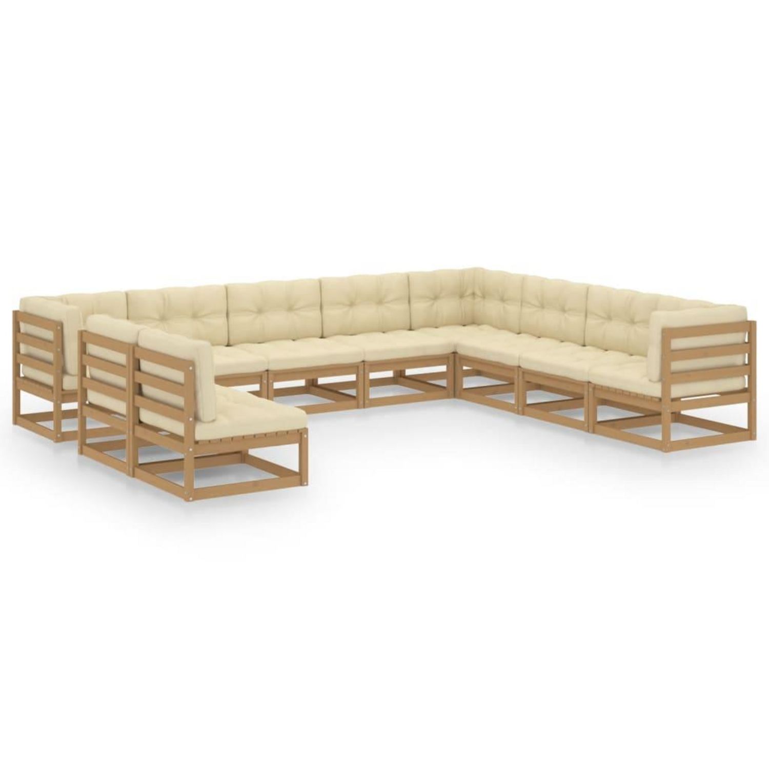 Salon de jardin 10 pcs avec coussins Marron miel Bois de pin