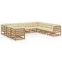 Salon de jardin 10 pcs avec coussins Marron miel Bois de pin
