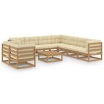 Salon de jardin 10 pcs avec coussins Marron miel Bois de pin