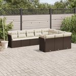 Salon de jardin 10 pcs avec coussins marron resine tressee