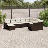 Salon de jardin 10 pcs avec coussins marron resine tressee
