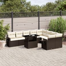 Salon de jardin 10 pcs avec coussins marron resine tressee
