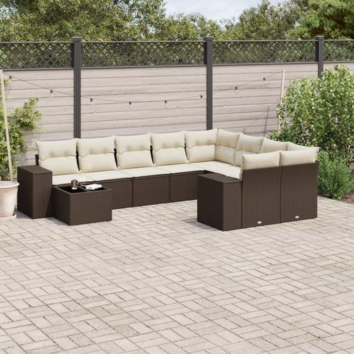 Salon de jardin 10 pcs avec coussins marron resine tressee