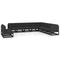 Salon de jardin 10 pcs avec coussins Noir Bois de pin massif